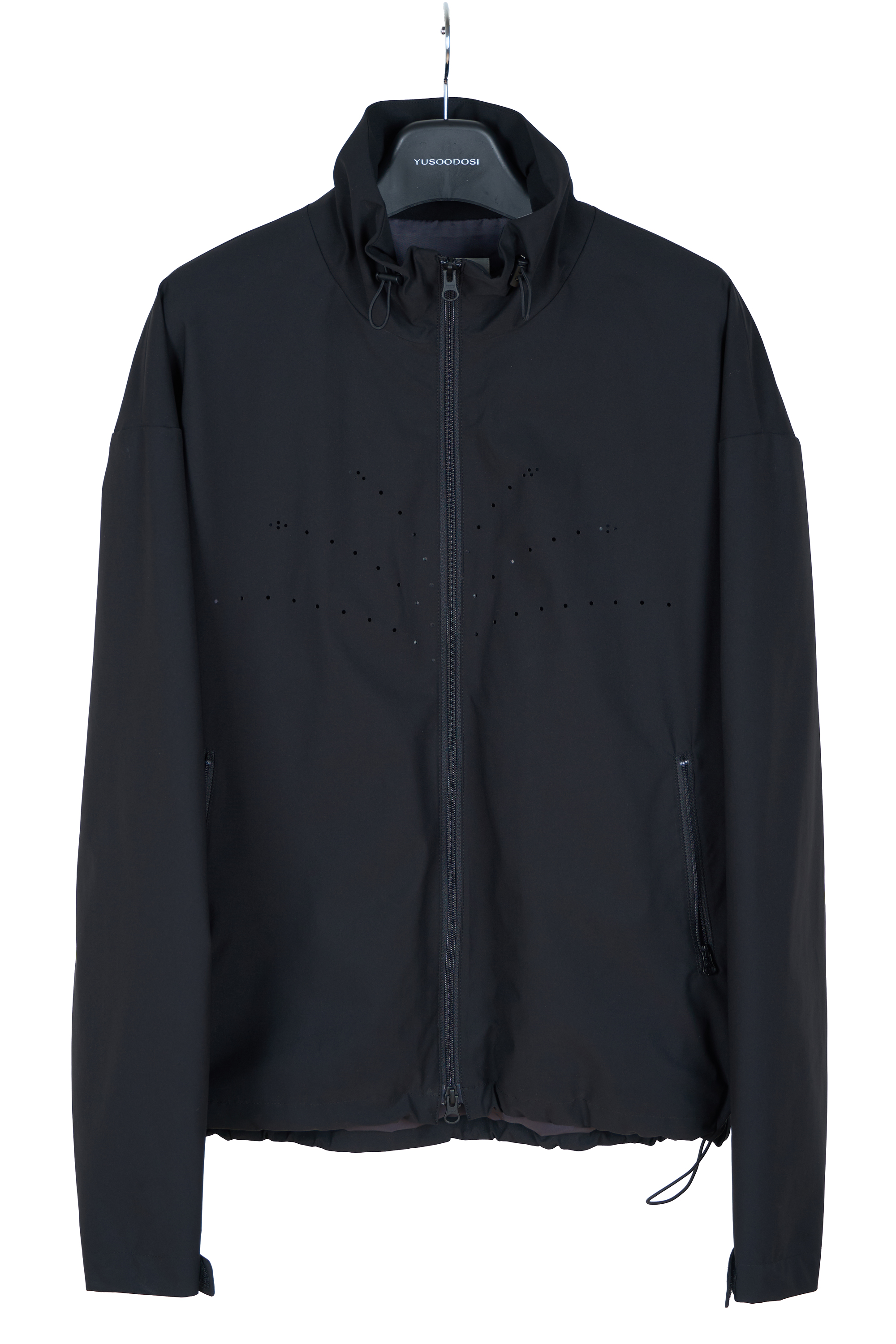 플라워 로고 모양으로 겉감 전면부가 타공된 가을 겨울 러닝 자켓