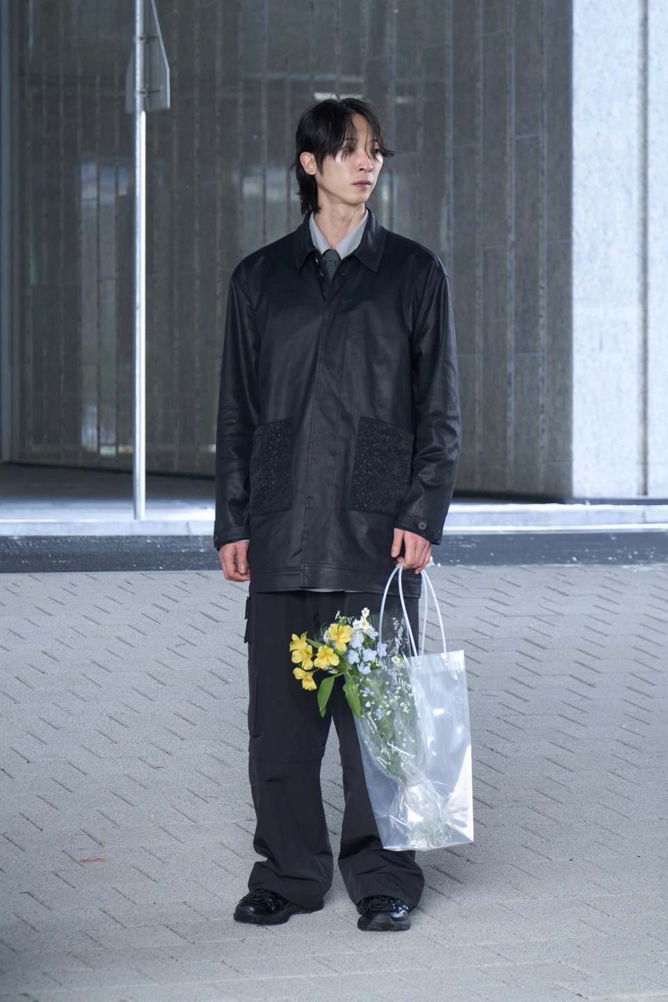 플라워 자카드 포켓으로 변주를 준 비건 레더 카코트